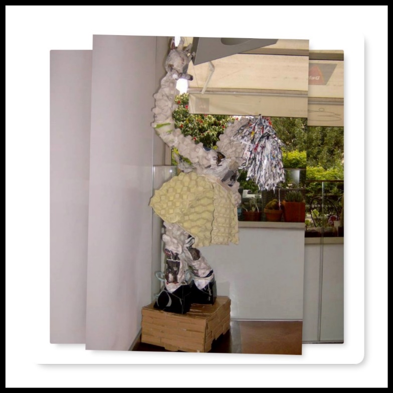 | Emília | 57cmx57cmx165cm | Cartões. Jornais, Têxteis, Colas |