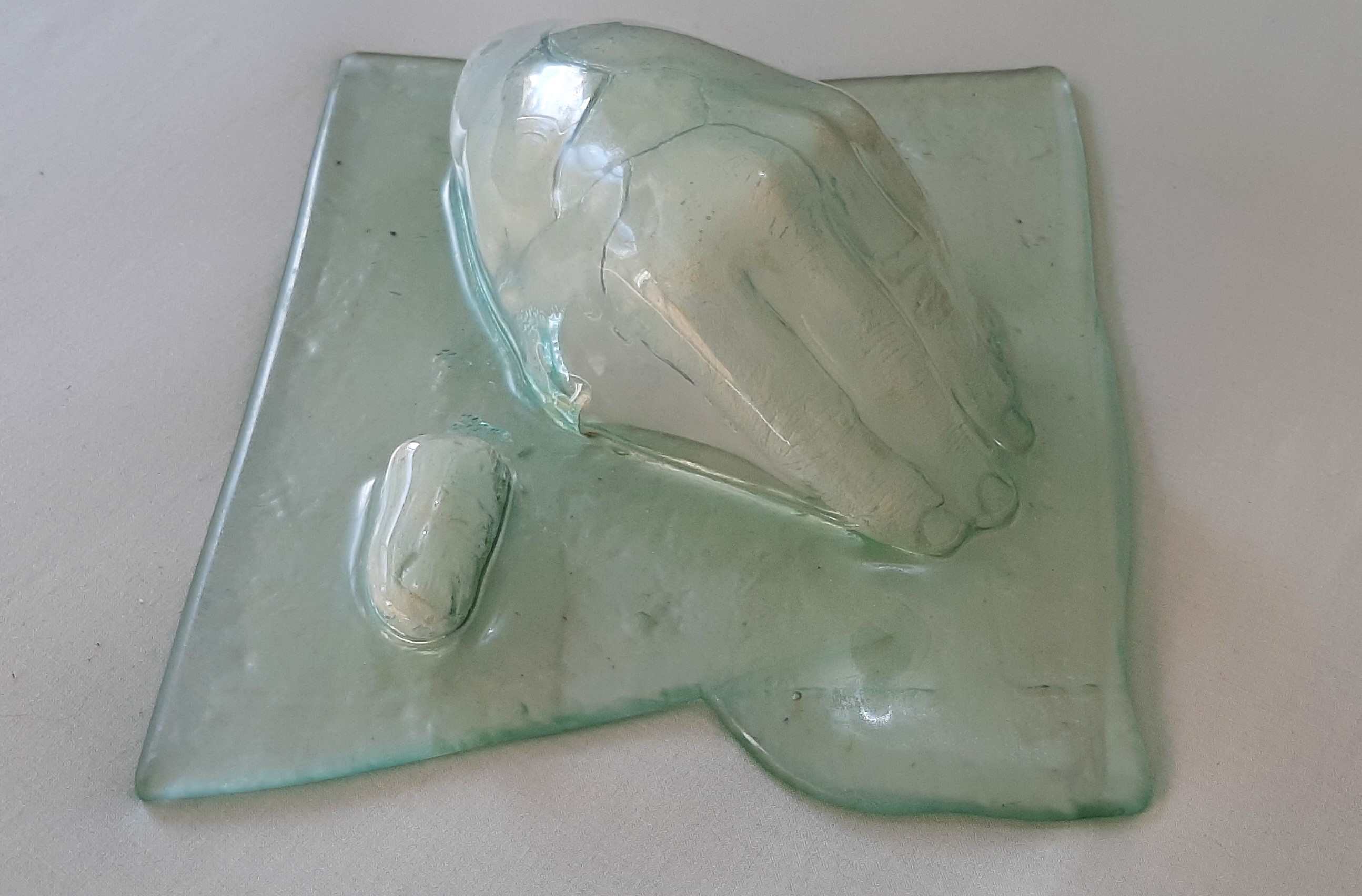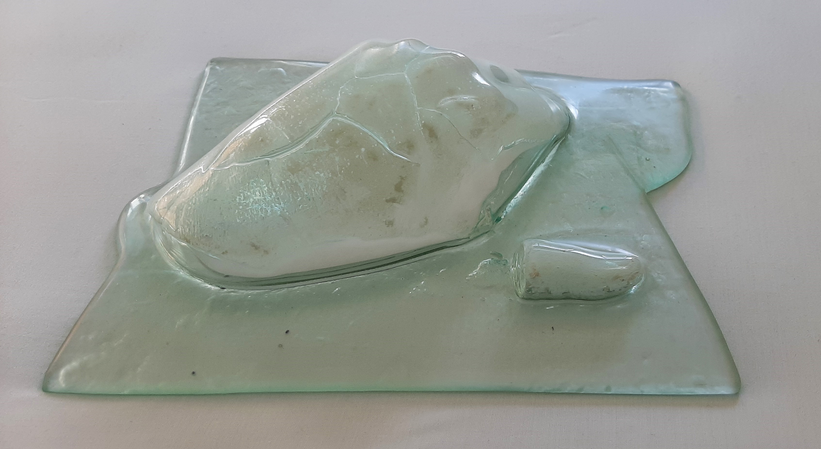Materiais: Vidro e Gesso Dimensões24x22x14cm Técnica: Fusão e Slamping