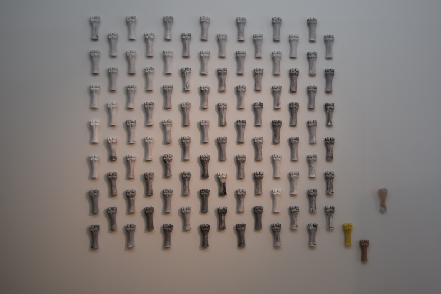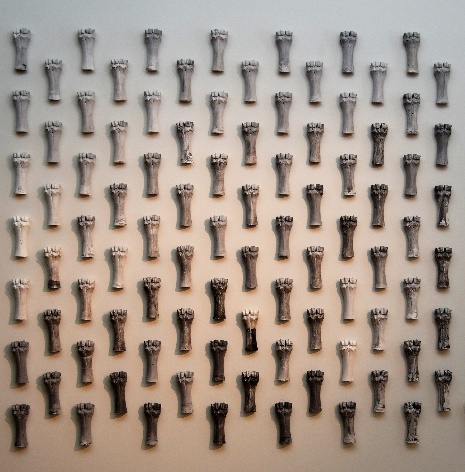 “TODOS DIFERENTES TODOS IGUAIS é o culminar dum percurso. … caminhamos, calcamos e calcorreamos diferentes percursos. Percursos esses traçados ao longo das nossas vidas, de formas mais ou menos sinuosas, com altos e baixos, mais longos, mais curtos, com amores e desamores. Esses caminhos vão sendo esculpidos de diferentes modos, jeitos, feitios…” Domingos Alves Sá “Estudos genéticos já provaram que não existem subgrupos de humanos, sendo errado classificar negros, asiáticos, indígenas ou outros grupos enquanto diferentes raças. A abordagem antropológica e sociológica da questão estabelece que os diferentes grupos entre humanos são etnias, e apresentam diferenças fenotípicas, como a cor de pele.” Esta obra procura homenagear a diversidade da raça humana, tanto na vida como na morte. O osso é um dos elementos do nosso corpo humano. E cada elemento escultórico, aqui, inspirado num osso, representa um ser humano. Vivo ou morto. Cada elemento, apesar de serem todos em gesso, de serem todos iguais, eram ao mesmo tempo todos diferentes.